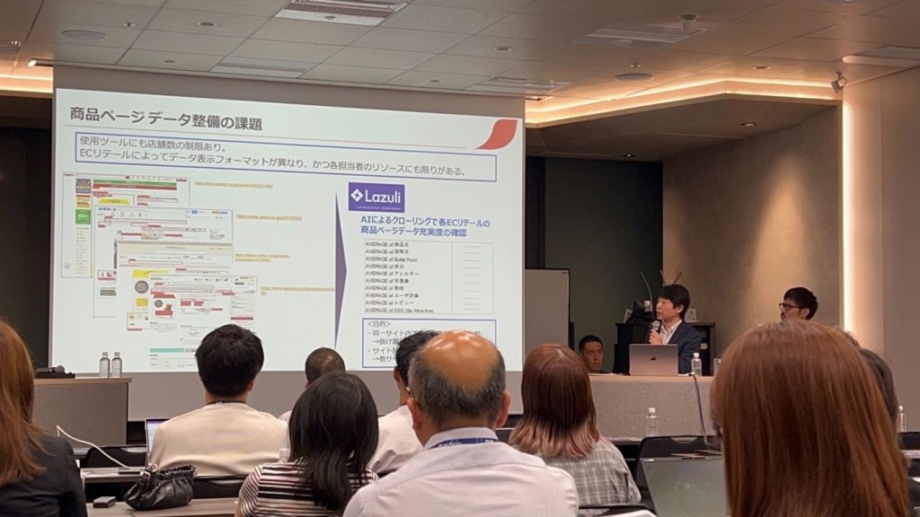 一方、ツールの限界も指摘されました。Amazonや楽天といった大手ECモールには対応できても、それ以外のチャネルやSKUバリエーションごとの差分までは追いきれないという課題がありました。そこで昨年、ネスレはLazuliと連携し、AIによるページクローリングを実施しました。商品名・説明文・成分などの要素を網羅的に確認し、同一ブランド内での商品情報の粒度や、サイト間での情報の非対称性を可視化しました。