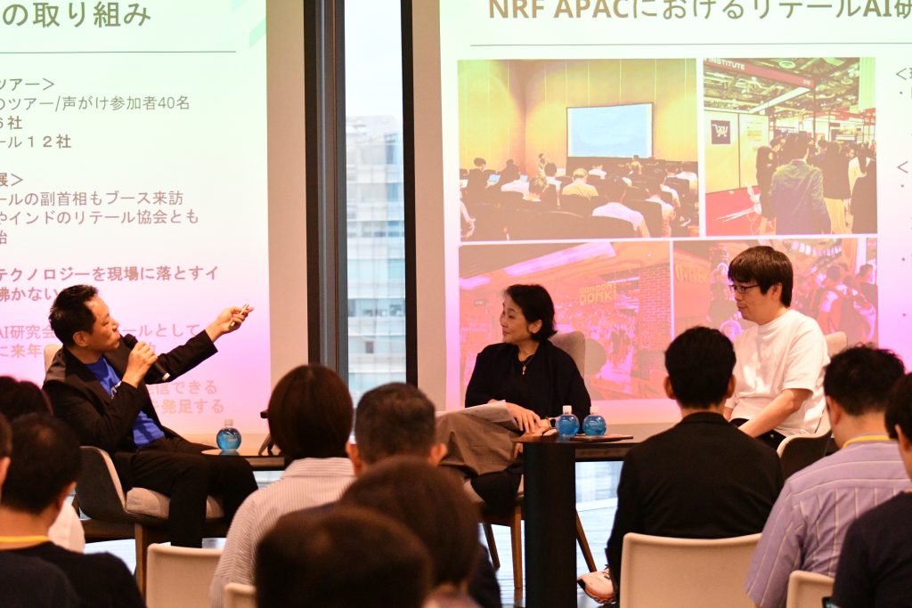In a discussion on the latest retail trends in the APAC region, Shun Iba, Representative Director of IBA Company Co., Ltd., Takuto Hayashi, board member of the Retail AI Study Group, and Hideo Kitashoji, Executive Officer of Lazuli Inc., took part. NRF APAC was held for the first time in Asia, with 7,000 people registered overall, of whom about 400 were Japanese. It was also Lazuli Inc.'s first overseas exhibition, and the company launched a Japanese community on Facebook and provided a place on-site for both learning and sharing, which was well received by participants.