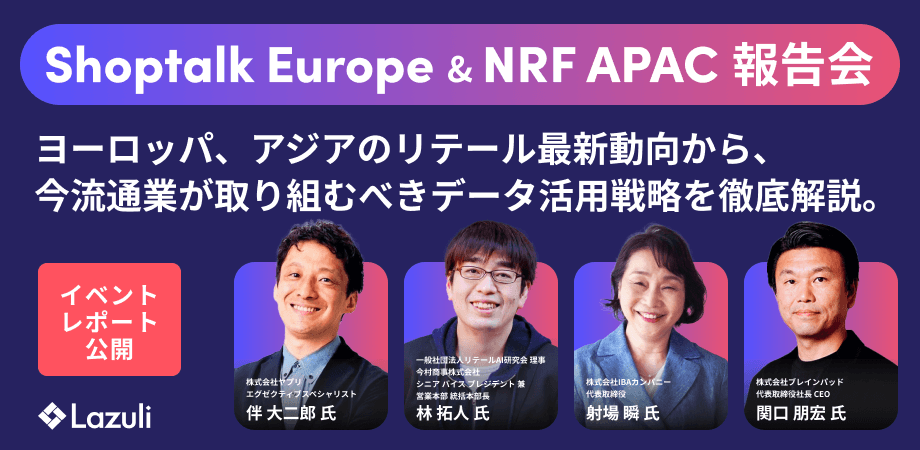 At the Shoptalk Europe & NRF APAC debriefing, the latest retail trends and data/AI utilization strategies were presented. At Shoptalk Europe, the evolution of unified commerce powered by generative AI was emphasized, with concrete examples from many companies and brands, including Walmart and L'Oréal. At NRF APAC, AEON's initiatives and retail media trends were discussed, offering important insights for Japan's retail industry as well. As a pioneer in product data platforms, Lazuli PDP is expected to play an active role in the future practice of "customer data × product data" and contribute to industry-wide product data integration and AI utilization.