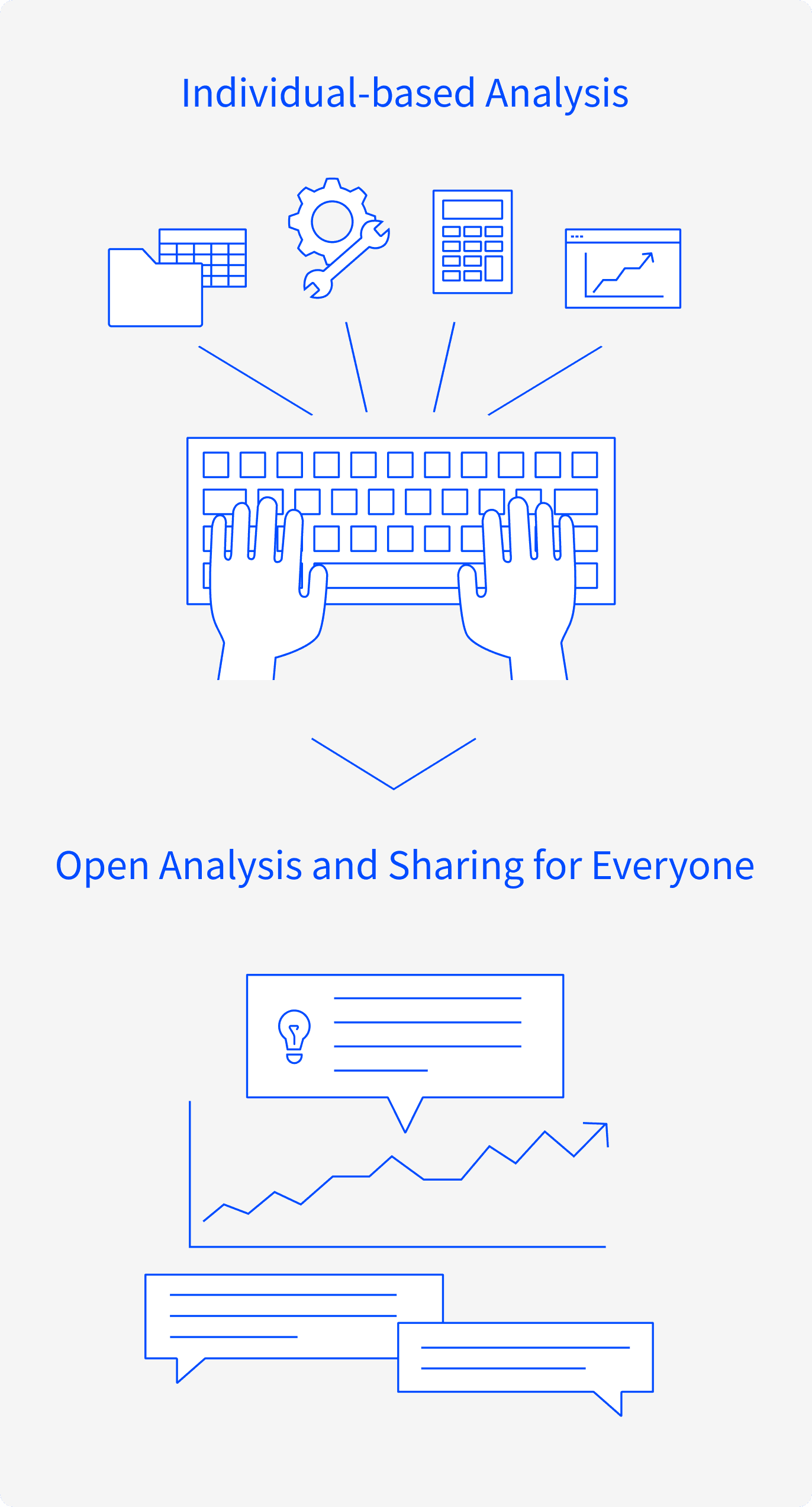Analyze vast amounts of data from different perspectives according to each role, and turn it into insights that are easy to understand for both the field and management.