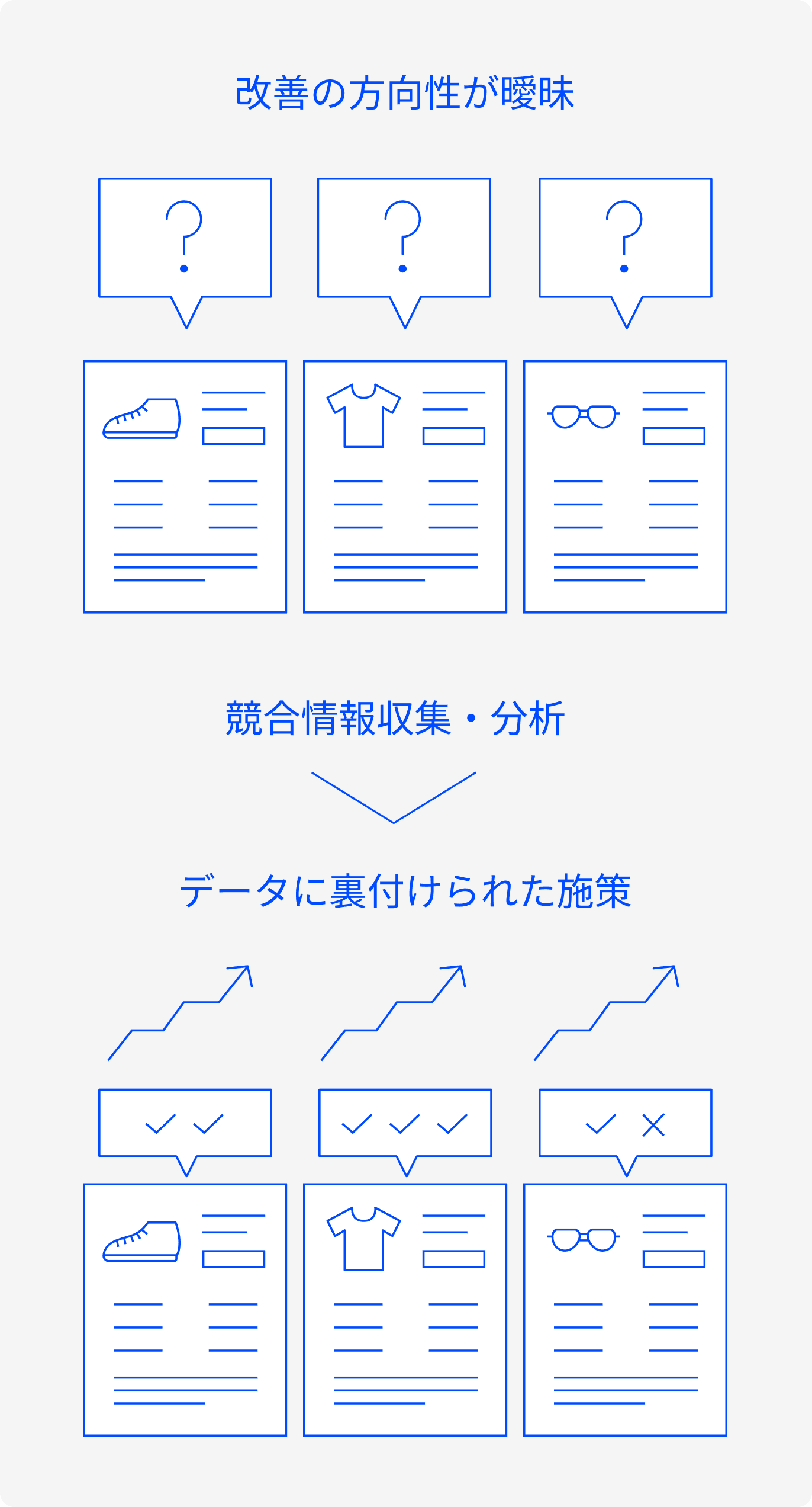 膨大な競合データを自動収集・処理し、改善点を抽出。手作業では膨大な工数を要する分析を効率化し、迅速に施策へ反映。