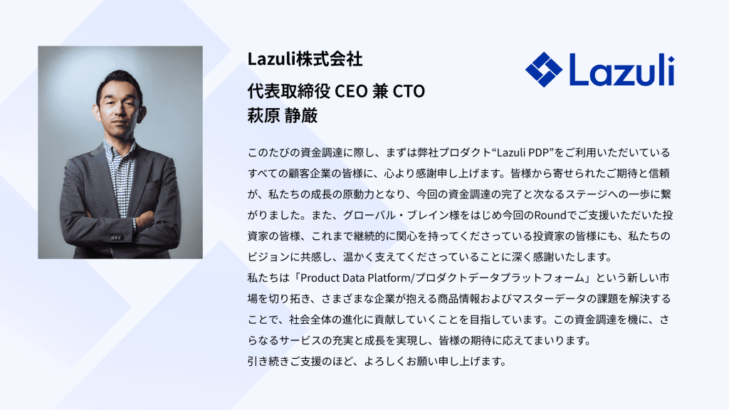 【Lazuli株式会社 代表取締役 萩原 静厳からのコメント】