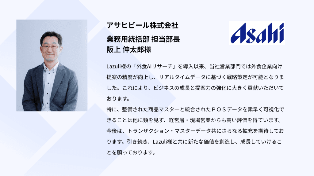 <アサヒビール株式会社 業務用統括部 担当部長 阪上 伸太郎様>