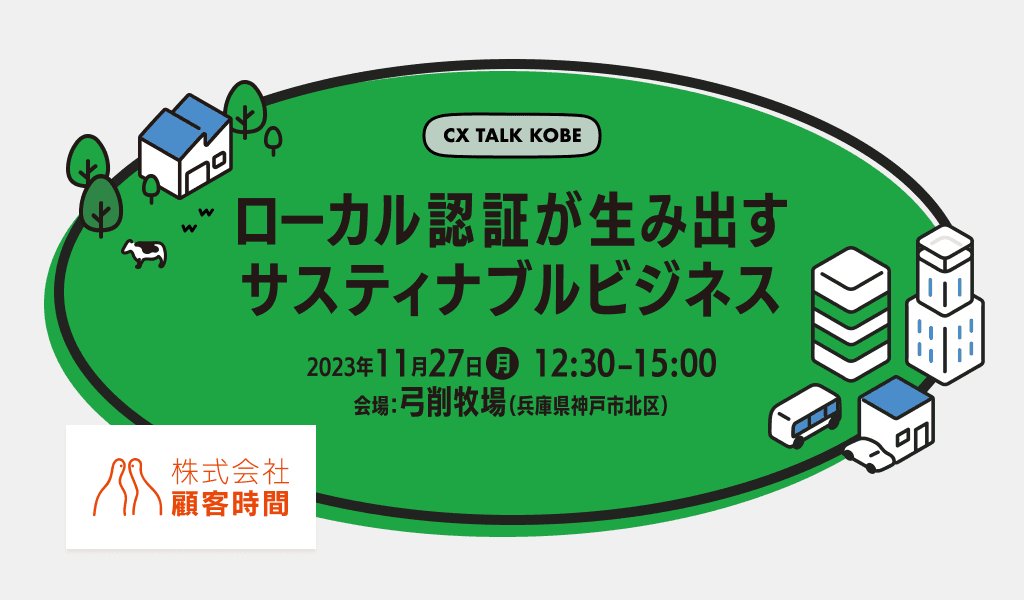 【お知らせ】株式会社顧客時間が主催するイベント、「ローカル認証」を通して、サスティナブル・ビジネスを生み出す仕組みを紹介するイベント「CX TALK KOBE」に協賛